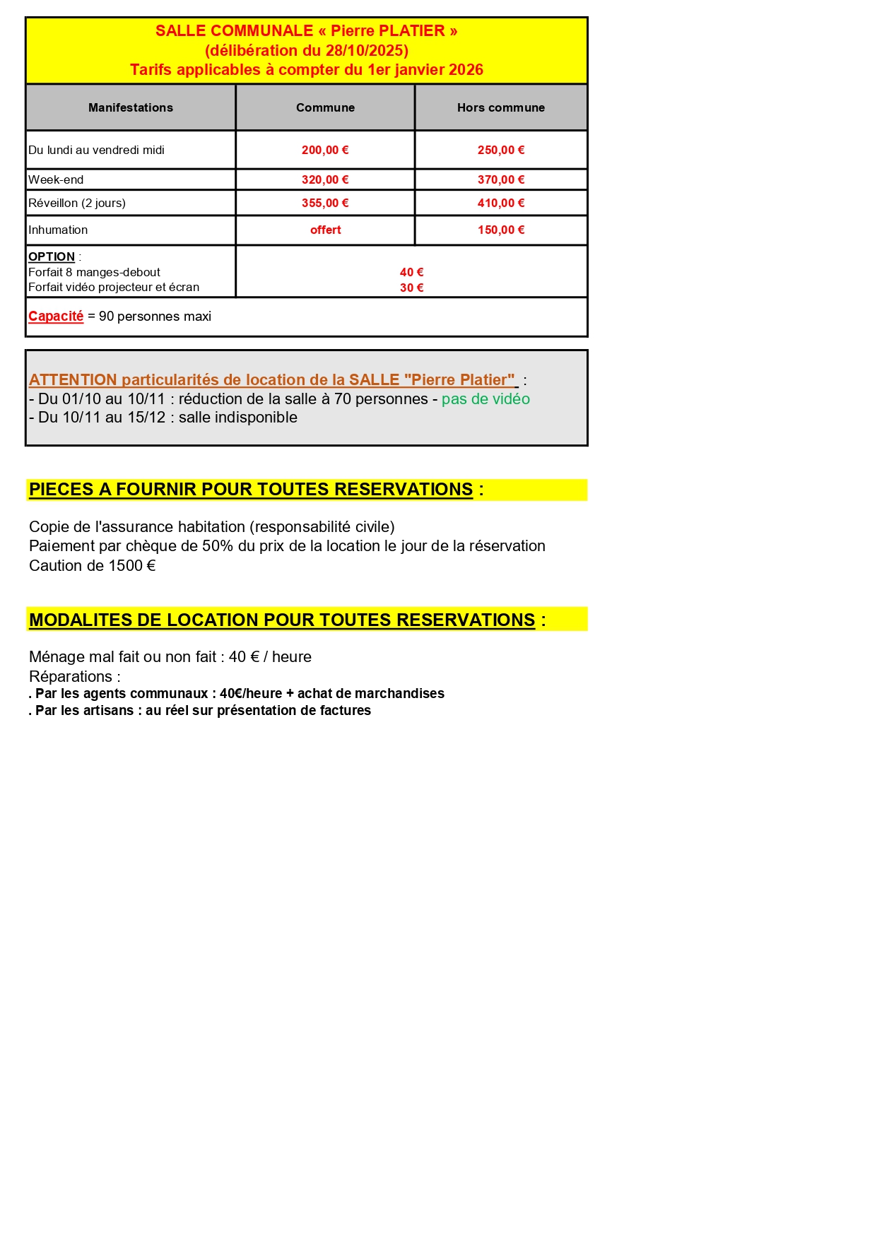 La salle est fermée de mi-novembre à mi-décembre pour les représentations théâtrales de la commune.